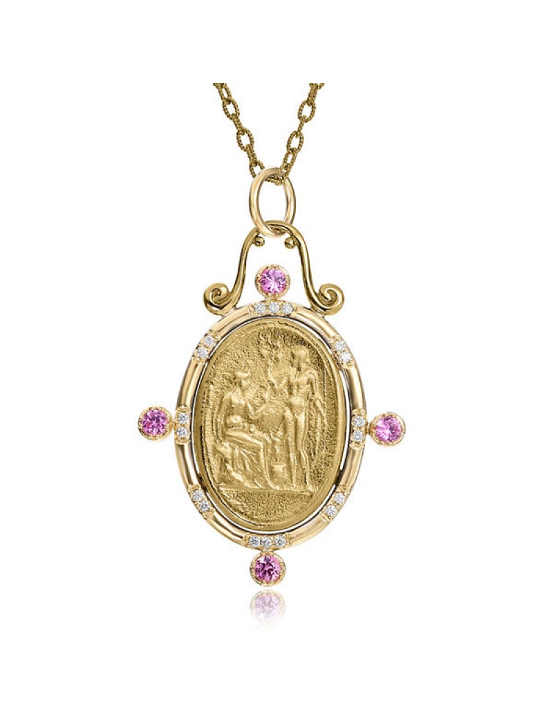 ANTIQUED/18K YELLOW GOLD PENDANT 0.13WHITE DIAMONDS 0.56 PINK SAPPHIRE